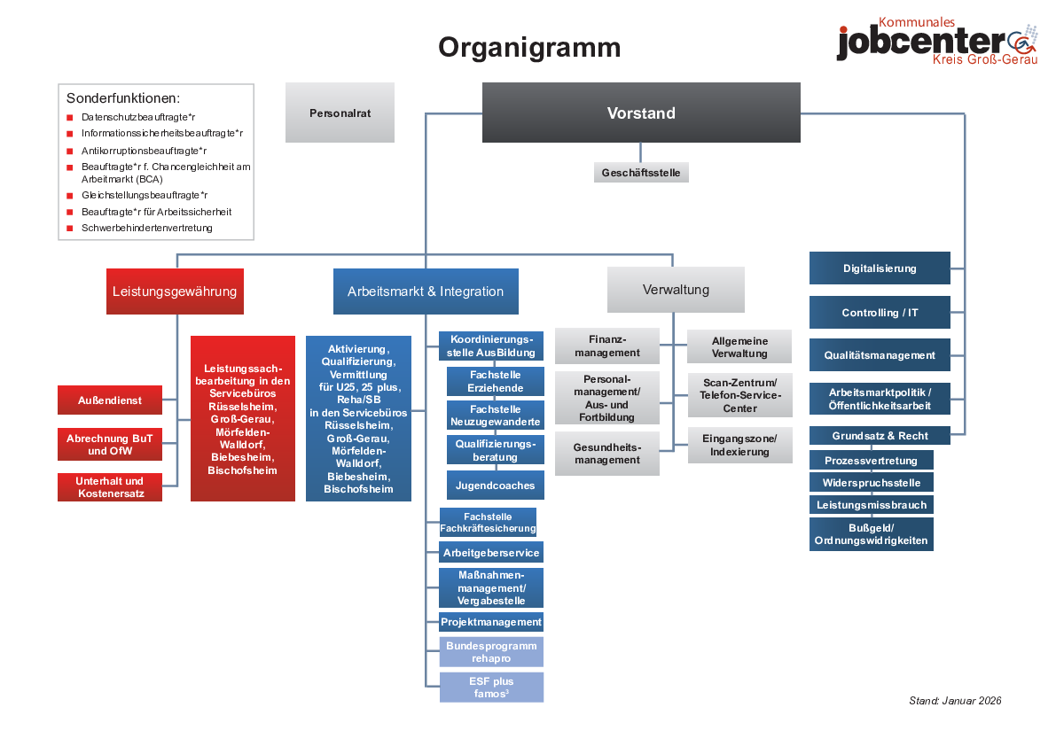 Hier finden Sie das aktuell gültige Organigramm des Kommunalen Jobcenters Kreis Groß-Gerau (PDF).